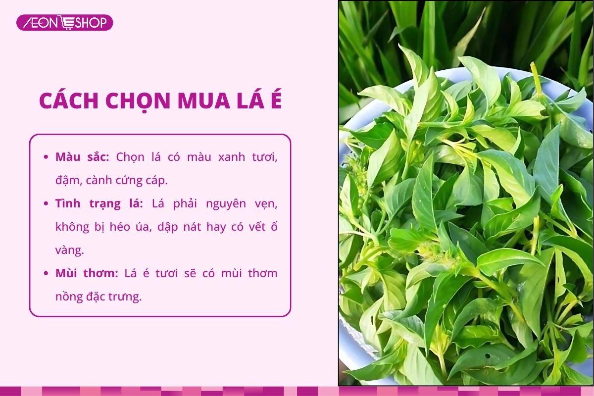 - Ưu tiên lá é non, màu xanh tươi, cuống còn tươi, khi ngắt có tinh dầu thơm.